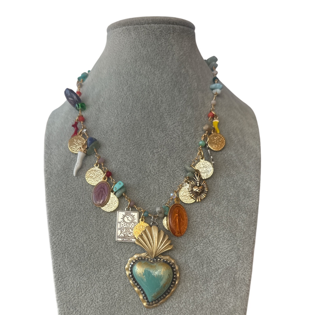 Collana di pietre dure e charms in metallo smaltato nichel free