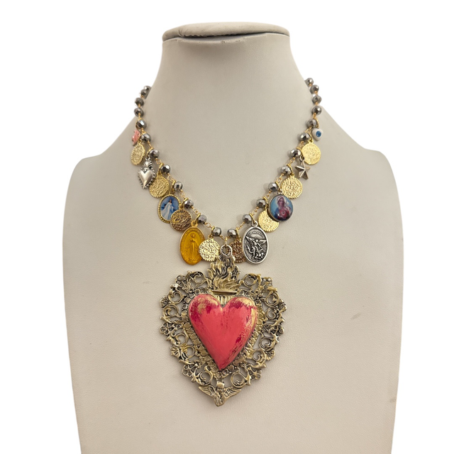 Collana cuore ex-voto salmone 25NM-8