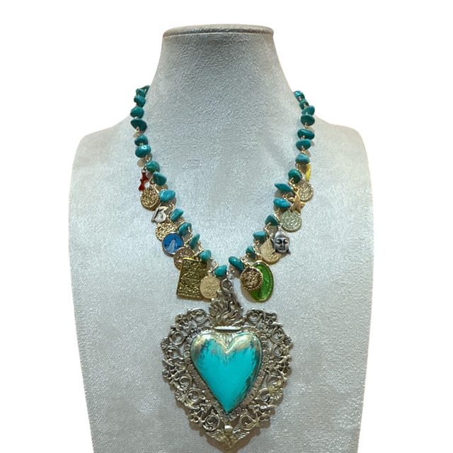 Collana di pietre dure e charms in metallo smaltato nichel free