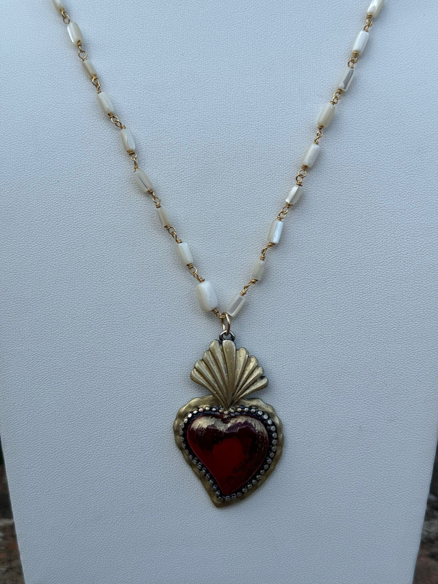 Collana lunga cuore exvoto bordeaux