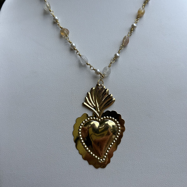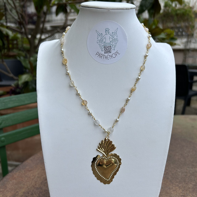 Cuore ex-voto con collana di pietre dure