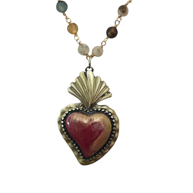 Mala pietre dure cuore rosato