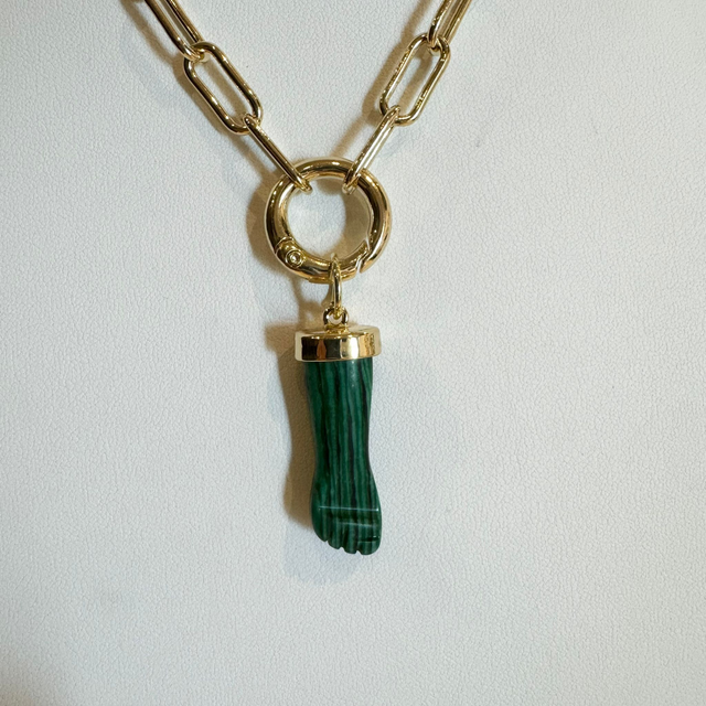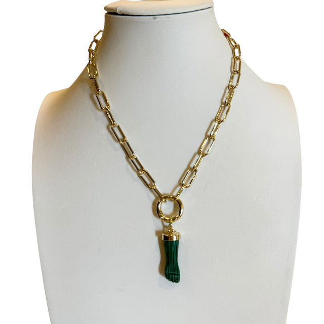 Collana in metallo dorato e ciondolo in malachite nichel free