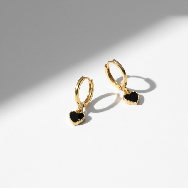 Orecchini cuore nero gold 26TG-10