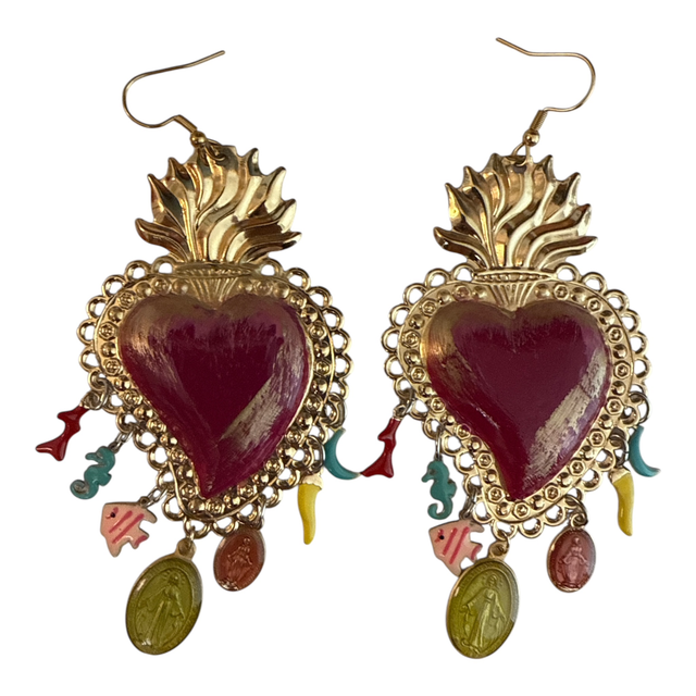 Orecchini cuore sacro Borgogna e charms 25SN-1